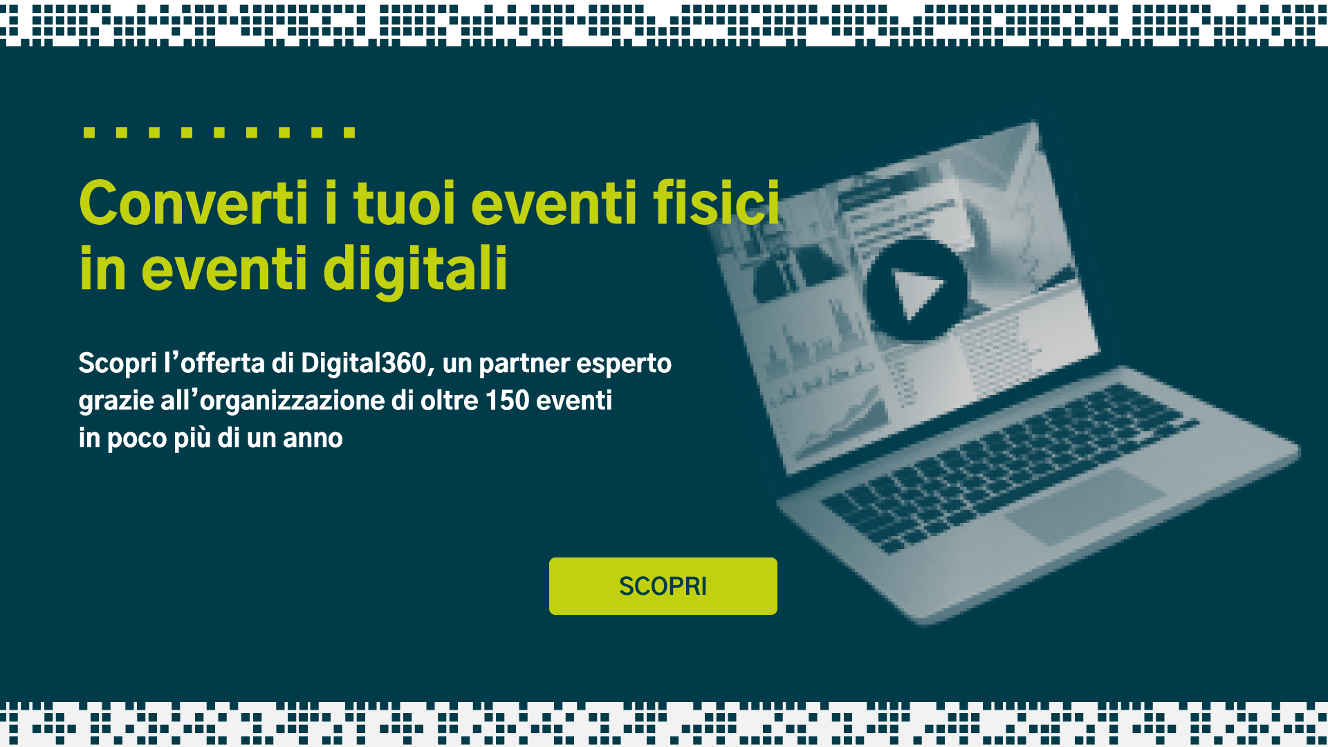 Incontra prospect, clienti e partner attraverso una vasta gamma di eventi online e offline innovativi: tavole rotonde di approfondimento, grandi eventi di comunicazione, webinar trasmessi online, summit, ecc. tutti gestiti attraverso piattaforme digitali, per massimizzare il networking e la generazione di opportunità di business.